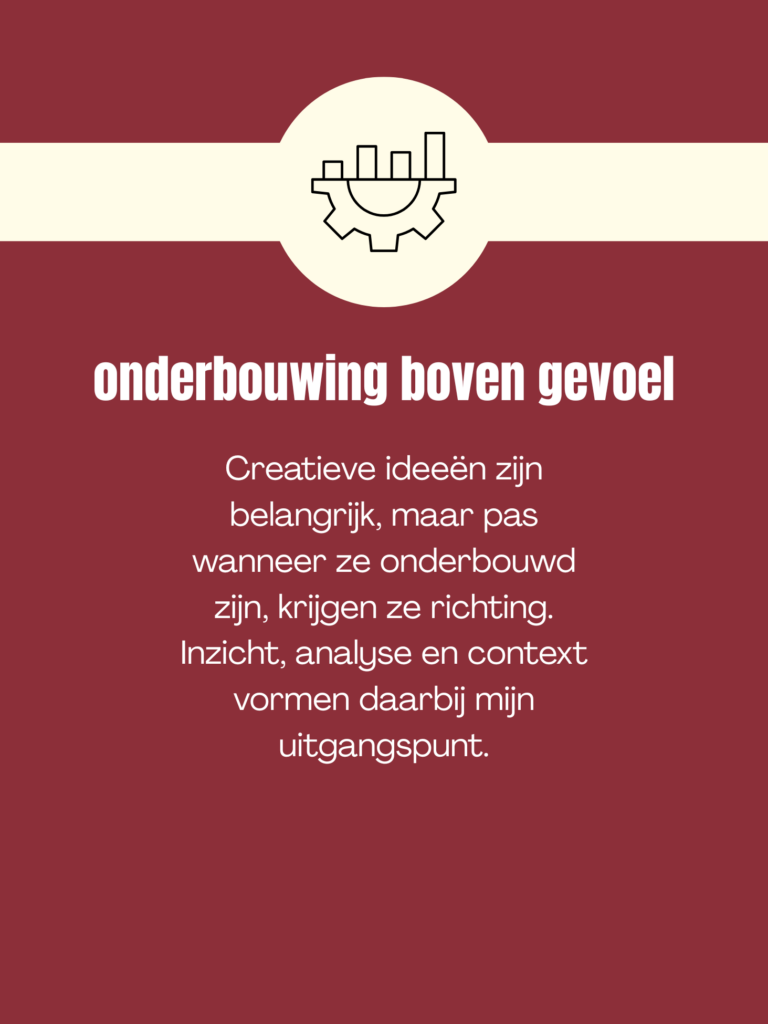 Ik geloof in discipline boven motivatie. Niet wachten op inspiratie, maar blijven analyseren, testen en aanscherpen. In mijn werk betekent dat: eerst begrijpen, dan pas creëren.